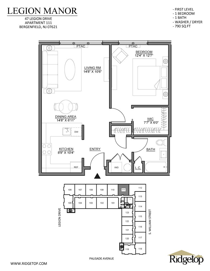 Welcome home to Legion Manor. This recently-constructed, luxury mid-rise apartment community is located in the heart of Bergenfield. You can enjoy spacious one and two-bedroom layout options offering on-site parking, a fitness room and shared business space. Our community has everything you need within walking distance from Legion Manor's front door including shopping, restaurants and the convenience of public transportation to New York City. In addition, shopping malls and entertainment destinations are near by and easily accessed by car or public transportation.